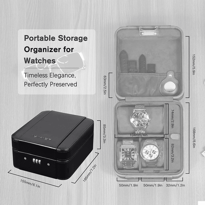 Un Regalo Original y Exclusivo..Protección fiable: este estuche de lujo de viaje para relojes, con cerradura de combinación es ideal para mantener tu privacidad y artículos seguros mientras viajas, el soporte para AirTag te hace encontrar tu caja de reloj rápidamente.(airtag No incluido)