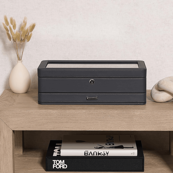 Estuche de lujo gris carbón para 12 relojes con cerradura